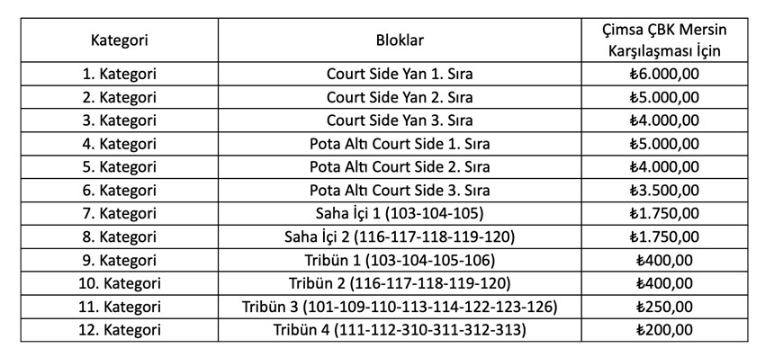 Sinan Erdem Spor Salonu’nda 3 Ocak Cumartesi günü saat 17.00’de oynanacak olan müsabakanın biletleri satışa sunuldu. Müsabakada bir kişi en fazla 5 adet bilet alma hakkına sahiptir.